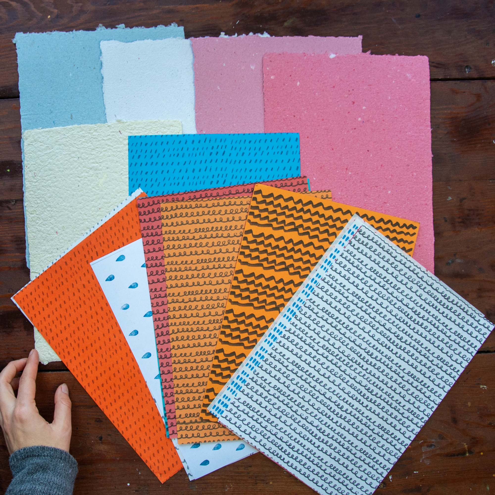 Rinkinyje aštuoniolika lapų. Tarp kurių yra mano pedirbto popieriaus lapų, maniškio dizaino lapų spausdintų ant spalvoto ar plono popieriaus.