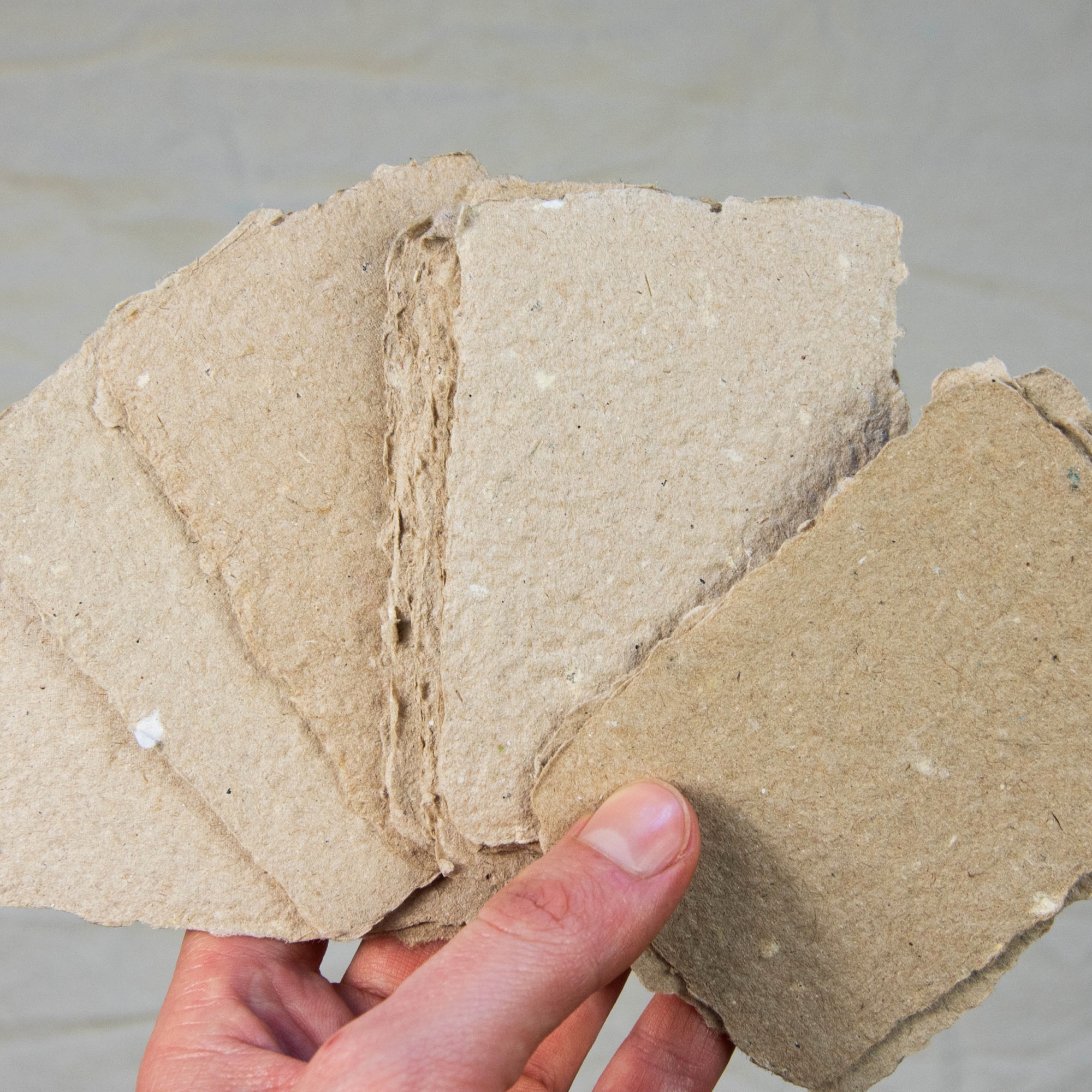 Skirtingų rusvų atspalvių kortelės, gyvu kraštu. Viena pusė faktūriškesnė kita lygesnė.
